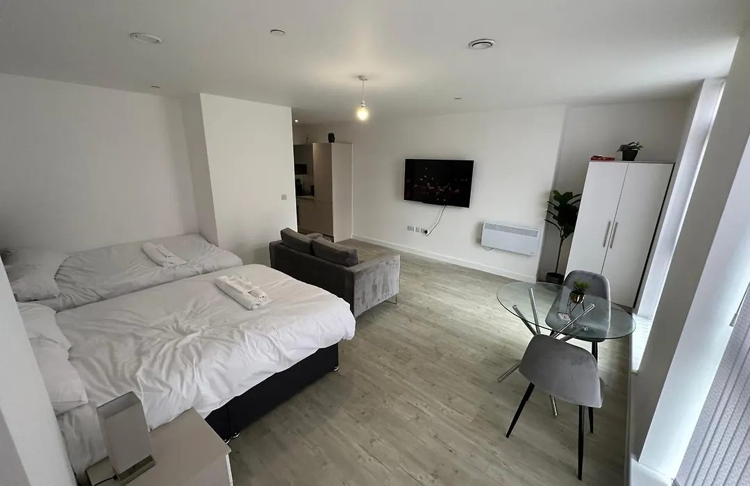 Located approximately 25 minutes' walk from Cathedral Church of St. John The Evangelist, the 1-room Manchester Salford Quays Studio Apartment apartment stands at a 3.4 km distance from a top family-friendly place like Sea Life Manchester.